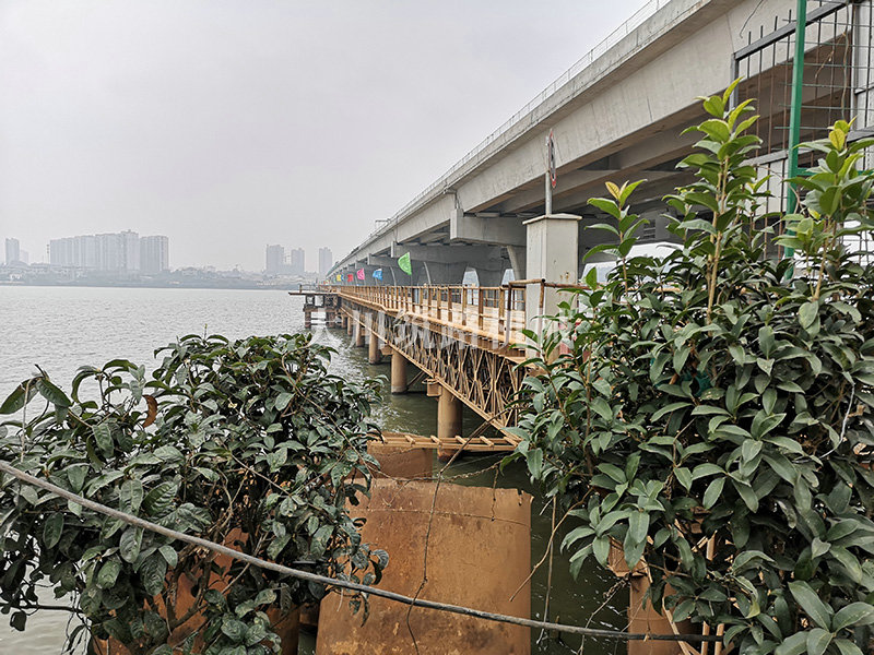 棧橋型號:1200m*6m上承式棧橋及50m*50m施工平臺。